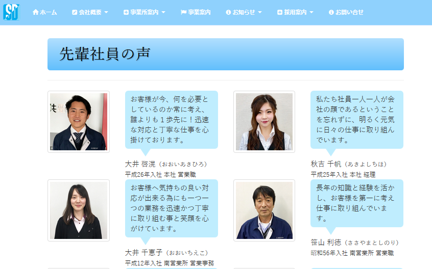 採用情報のページを更新いたしました。先輩社員の声を充実させておりますので、採用案内-採用情報メニューからご覧頂ければ幸いです。