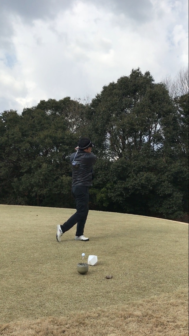 気合を入れて バコーンッ ボールから煙がシューっと 右側のレディースティまで、 ひとっ飛び! ナイスショット?(笑)